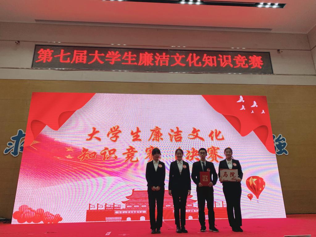 本科生代表队经过多轮角逐,层层选拔,在第七届大学生廉洁文化知识竞赛总决赛中荣获三等奖。