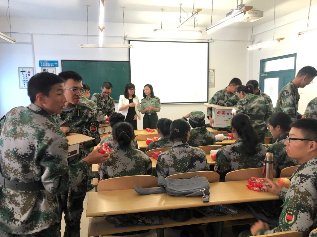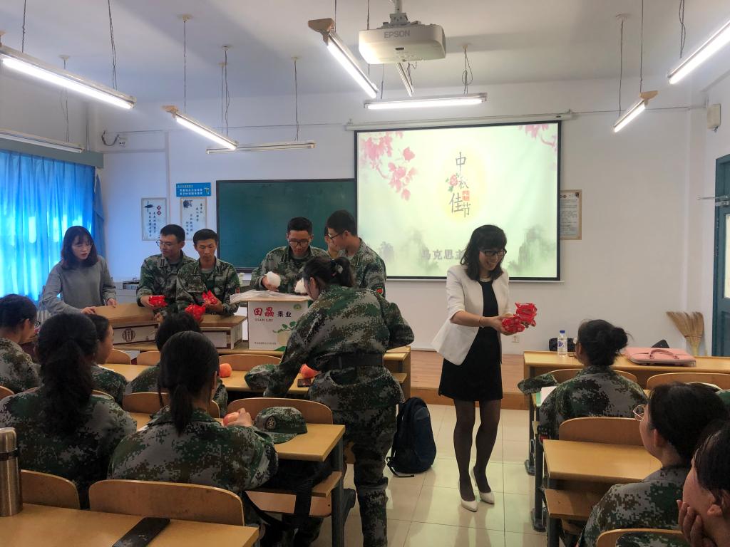 活动期间,崔妍为全体2019级本科新生分发了月饼和水果,并与同学们进行热切的交谈,询问同学们初入大学生活的体会和感触,鼓励同学们要尽快调整状态,适应大学生活的节奏和步伐。最后,她为同学们送上了中秋祝福,希望同学们能够在吉大度过一个美满的中秋佳节,热闹欢乐的气氛弥漫着整间教室。