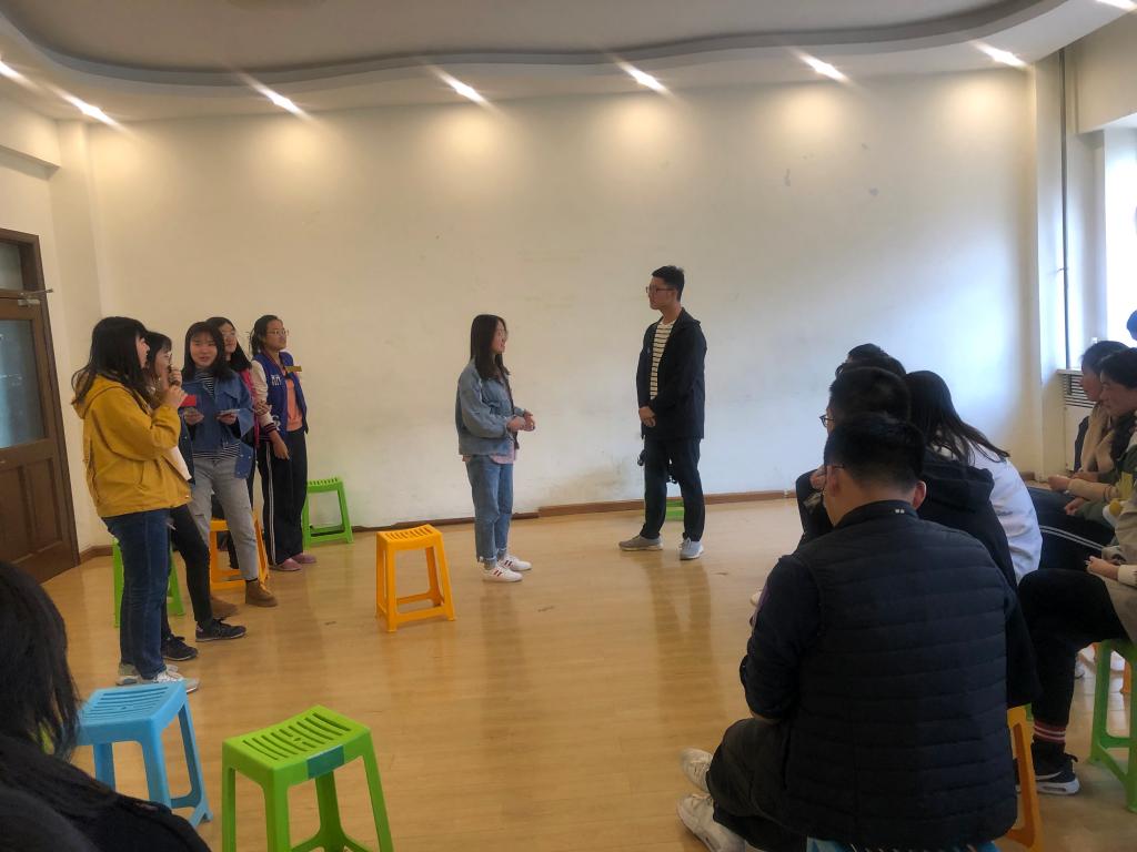 本科朋辈心理辅导员袁源主持。首先袁源介绍了本次班会的意义,引出了接下来的暖身活动。在暖身阶段,同学们全身心表达,分享自己的喜好和心情,不仅身体上做了运动,心理上也开始放松。其中的“情绪大头贴”活动让同学们学会表达情绪和辨别情绪。暖身过后正式进入班会阶段。所有人手结手的保密原则活动让同学们学会保守他人秘密。大家写的烦心事被同学们自己编演成情景剧,帮助同学们表达、觉察、正式、体验和反思,让大家有机会宣泄情绪、有产生共鸣的体验感。最后是结束阶段的分享环节,同学们自己发表了在整个班会过程中的感受,大家在愉悦轻松的气氛中,体验内化,内省自成。