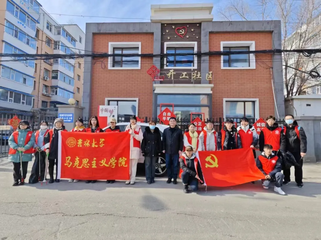 3月4日下午13:20,由15名同学组成的志愿者队伍前往长春市朝阳区开工社区进行学雷锋主题志愿服务活动。社区党委书记及其他工作人员在活动现场亲切地接待了到来的志愿者同学,并对本次活动的安排和注意事项做出指导。随后,社区统一为同学们分发相关工具,并带领志愿者队伍到达指定地点展开活动。