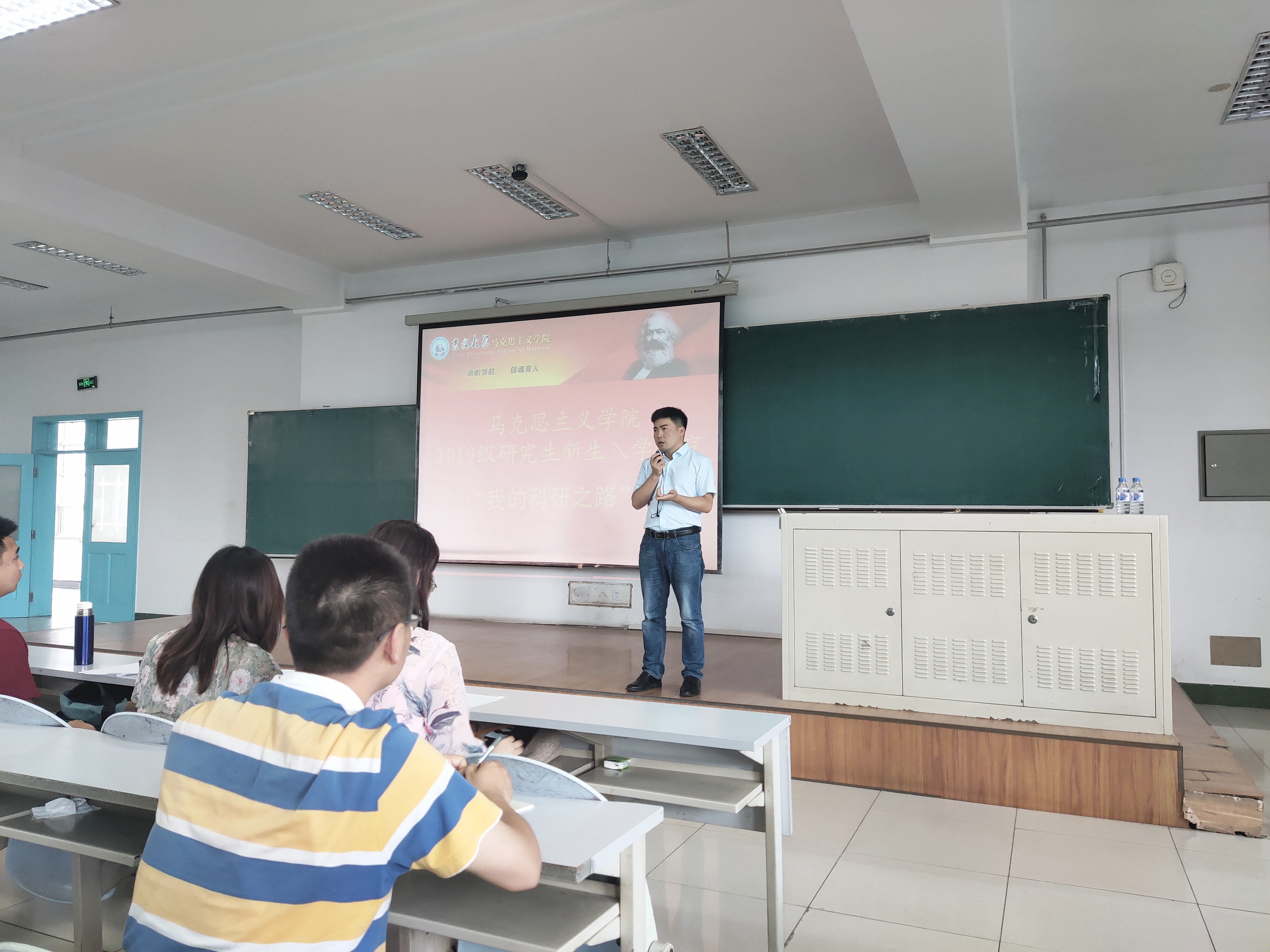 的一员,成为新时代青年马克思主义者,为马克思主义理论的研究注入新的生机与活力。接着,闫老师向同学们进行了简单的自我介绍,并讲述了自己的成长经历,与同学们分享了自己一路走来的科研心路和切身经验。闫老师指出,从事学术研究首先需要充足的前期积累,多阅读,尤其是马克思主义经典著作;多思考,带着问题不断深入探索;多动笔,不断培养学术思维,锻炼学术能力;多实践,理论命题总是要在实践中得以破解。同时,科研须得静心凝神、踏实稳重,且须切近实际、潜心探究,深入挖掘思想价值,切忌心浮气躁,浮于浅表。最后,闫老师还结合自身经历为新生们介绍了学术论文的写作要点和技巧,鼓励同学们进行经常性的学术论文写作训练,掌握论文规范,提升论文质量,为大家提供了诸多实用建议。