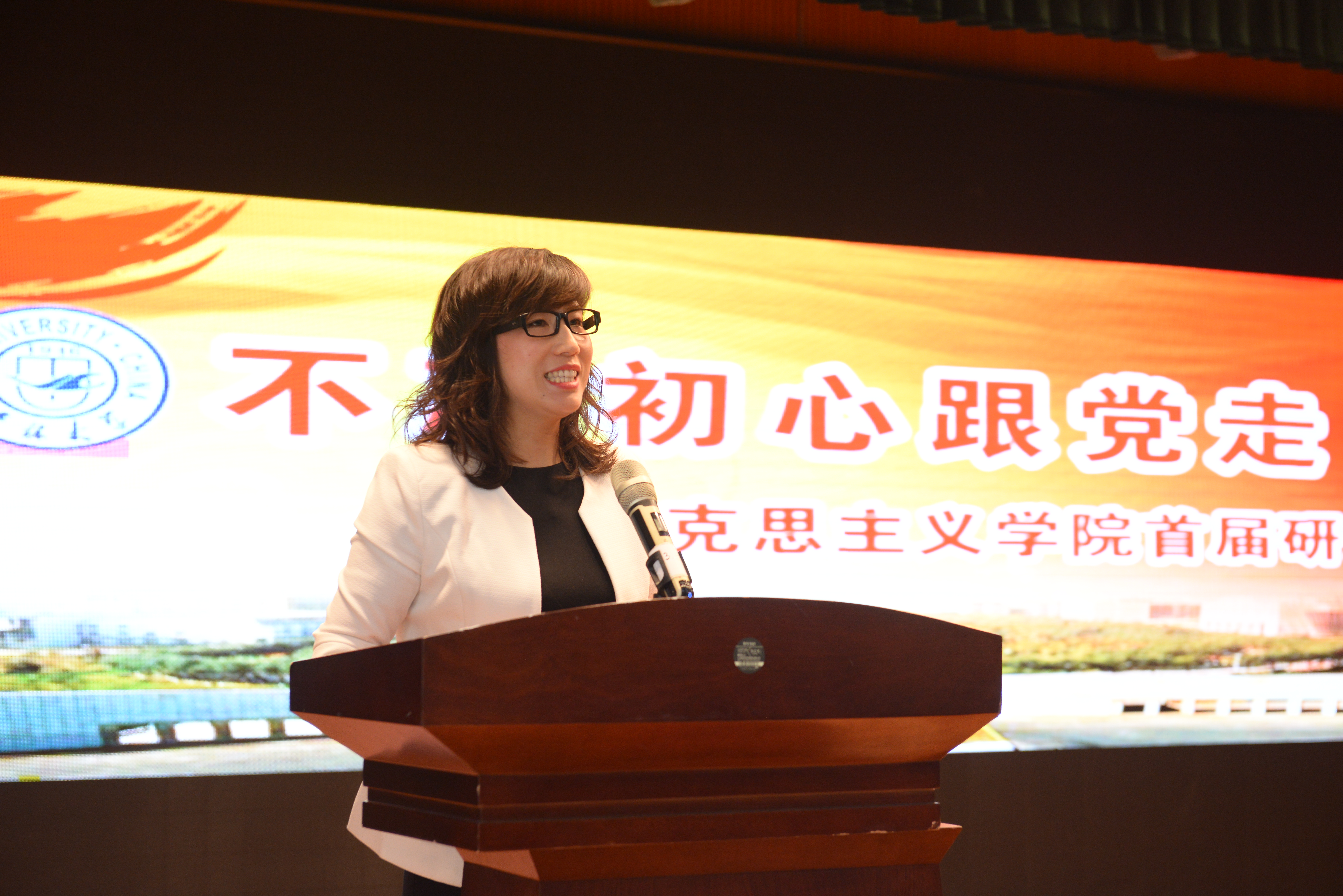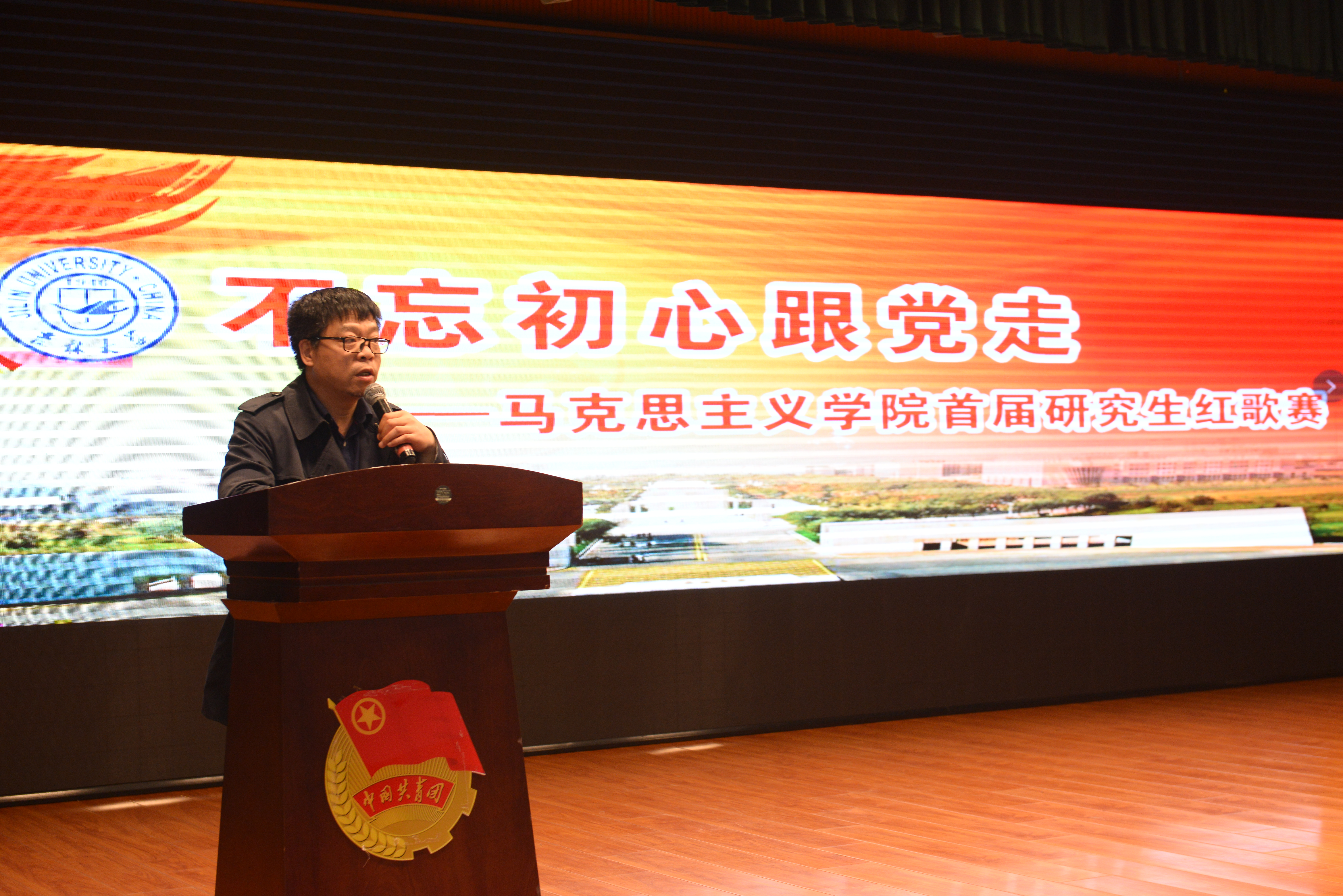 党委副书记、纪委书记崔妍老师为本次大赛致辞:时逢中华人民共和国建立70周年、纪念五四运动100周年,我们今天在这里唱红歌,用歌声表达对革命先烈的无比敬仰、对新中国建设者的无比崇敬!每一个历史时期都蕴含着不同的情怀,希望同学们在竞唱中体会,在传唱中继承,在工作和学习中发扬!鼓励同学们传唱红色经典、汲取精神力量,坚持党的领导、听党话、跟党走,心怀大志,脚踏实地,认真学好马克思主义理论,勇于承担新时代赋予青年人的使命,并预祝本次红歌大赛取得圆满成功!