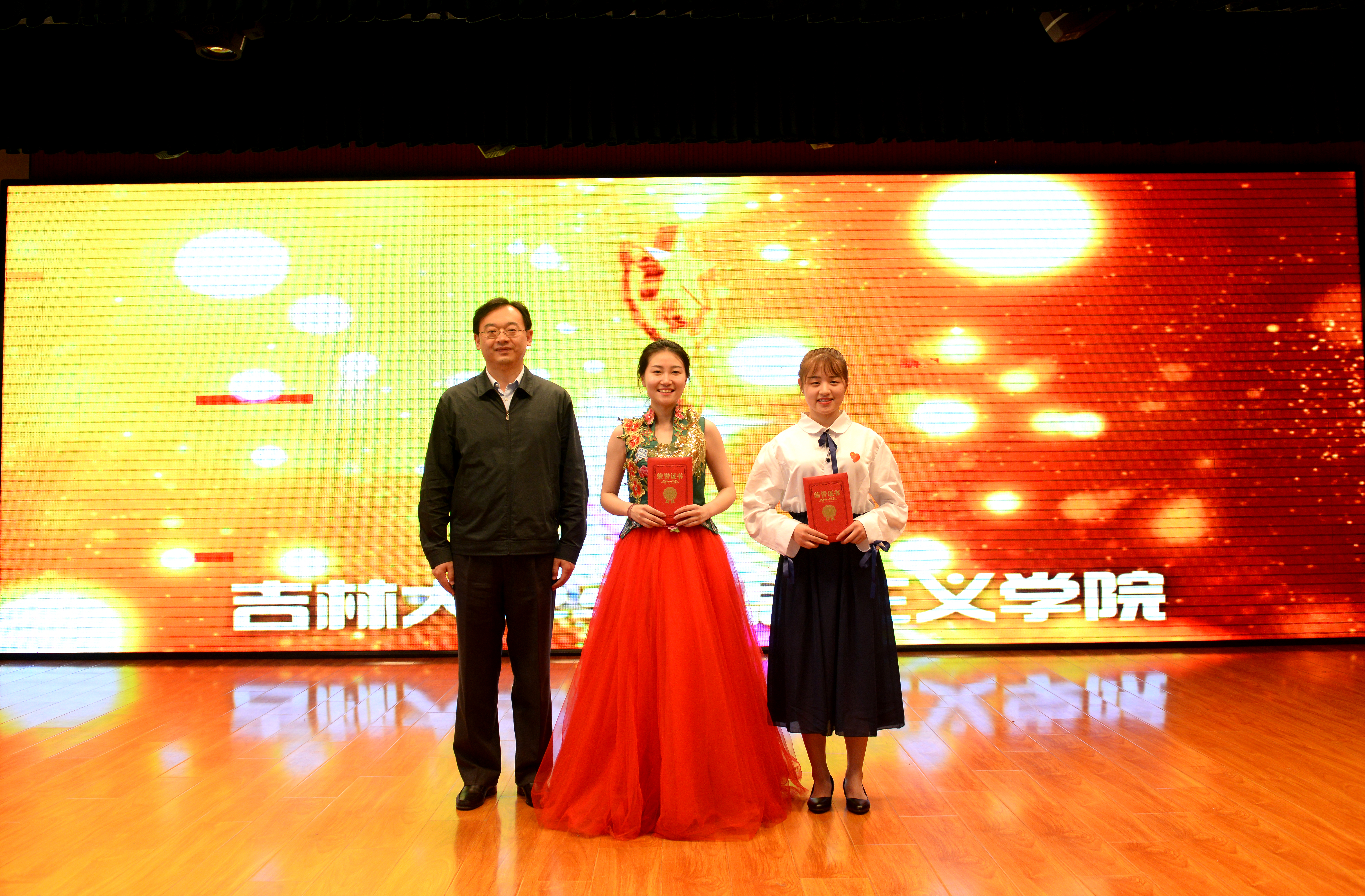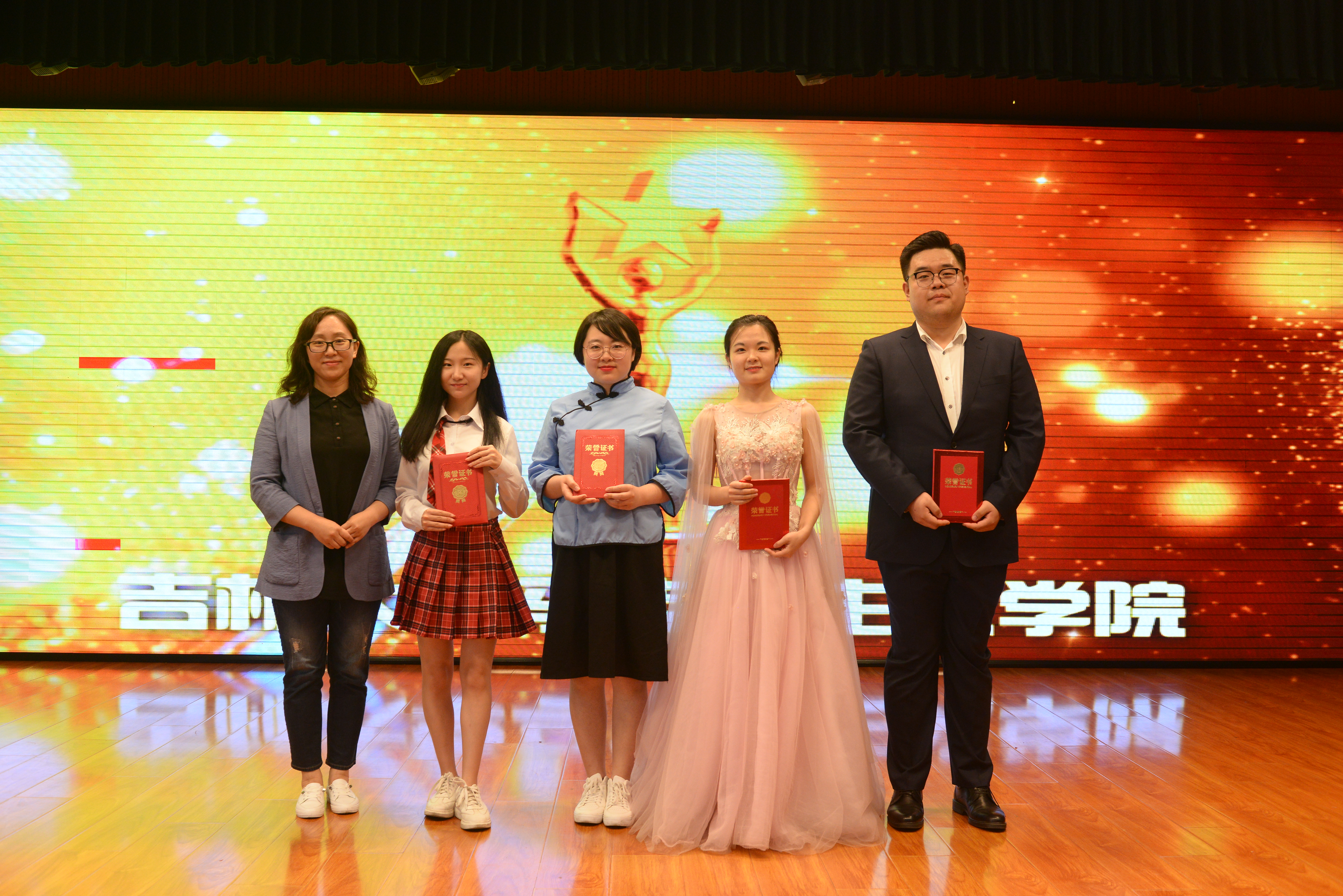 副院长邵彦敏选读获奖名单,党委书记霍志刚、副院长石瑛、行政副院长李长龙、副主任姜鑫分别为获奖同学颁奖。