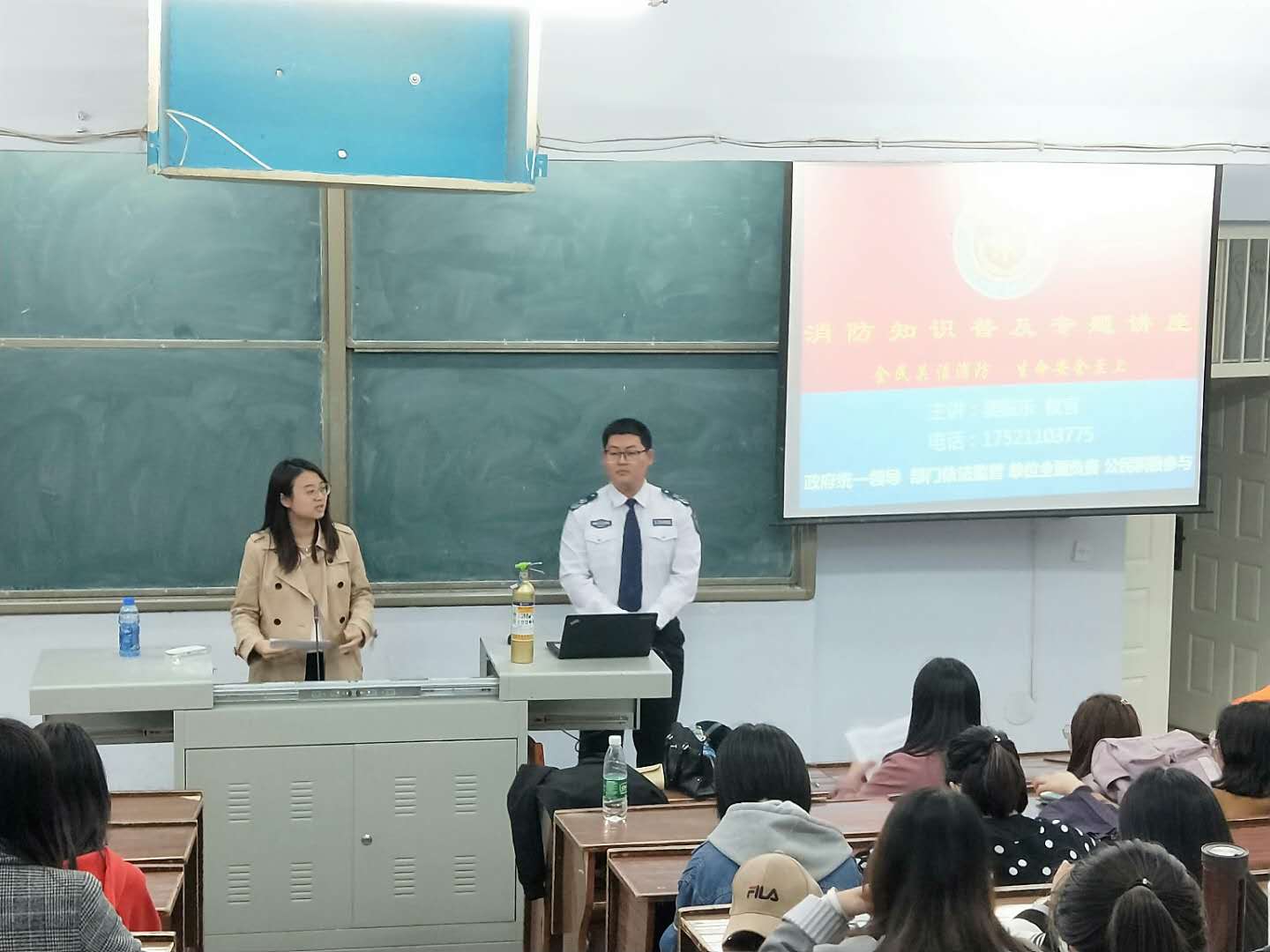 团委书记万佳悦老师主持。讲座开始前,万老师提醒同学们消防安全的重要性,尤其是寝室的消防安全问题,要求大家务必认真听讲,掌握有关防火救火的相关知识和技能,增强自我保护能力。