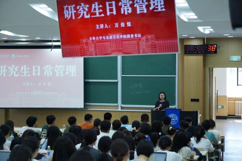研办秘书王佳靖老师也介绍了相关情况,2024级全体研究生新生参加了此次讲座活动。