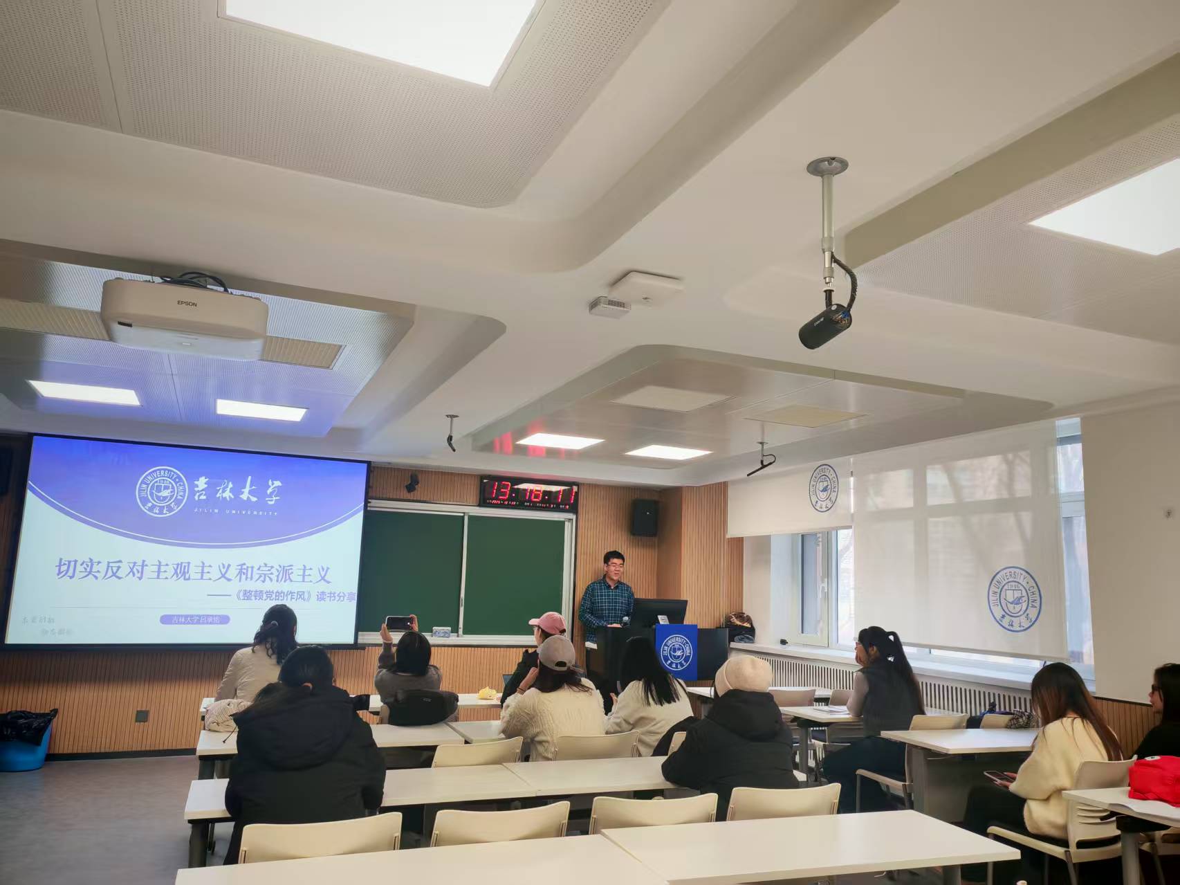 吕承铭同学带来《整顿党的作风》的经典研读分享。他从文章写作背景切入,通过文章内容梳理,深入分析了反对主观主义以整顿学风、反对宗派主义以整顿党风、反对主观主义与宗派主义的解决方法等关键内容。条理清晰的解读与逻辑严谨的梳理,让在场成员对这篇经典文献的理论内核与当代启示有了更深刻的理解,也为研究会的经典研读活动树立了良好开端。