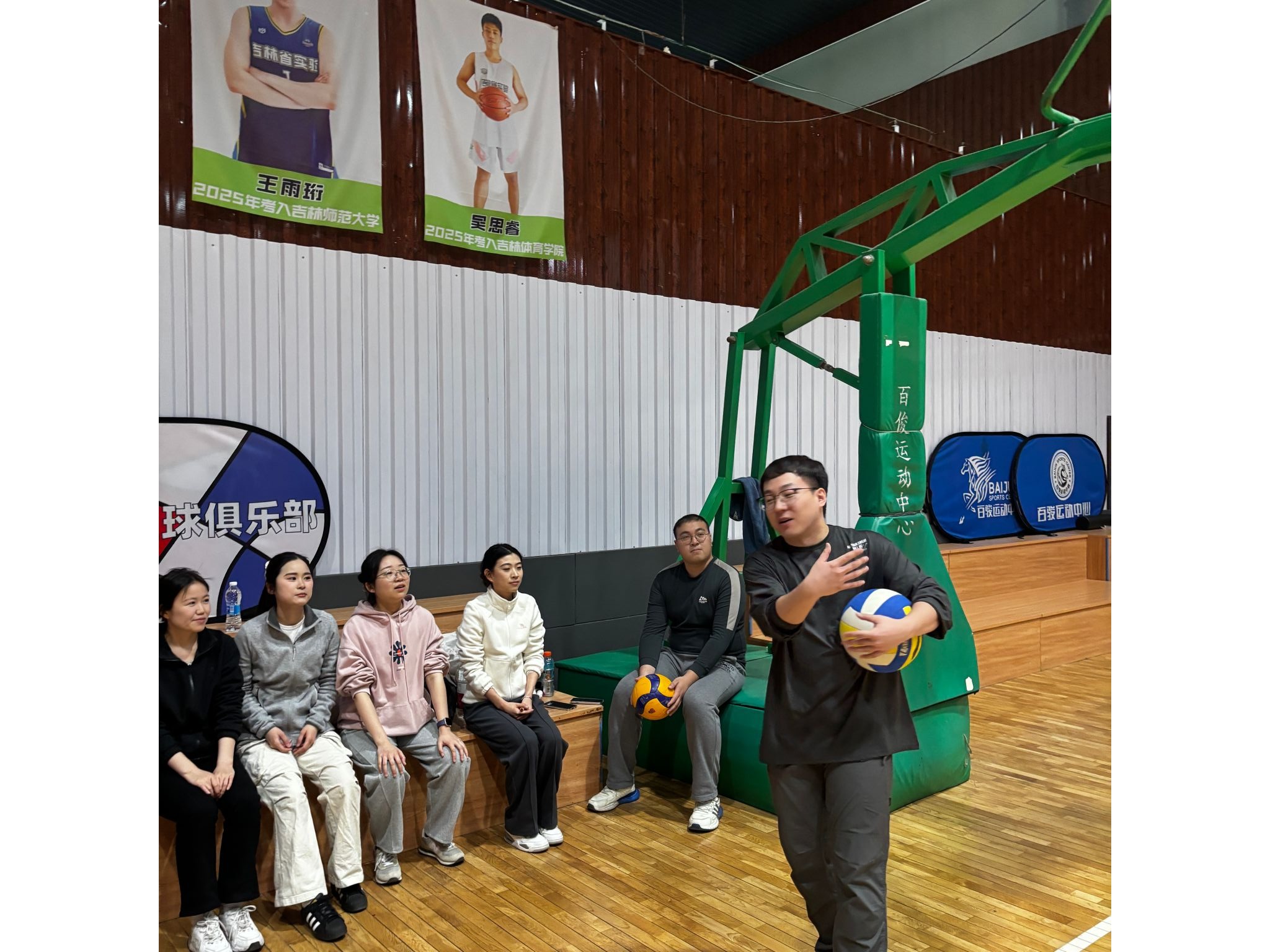 友谊赛开始前,为了让同学们更好地了解气排球的规则,学院邀请了有经验的博士师兄进行现场教学。师兄从场地、规则讲起,并示范了发球、传球、扣球等基本动作,提醒大家比赛中的安全事项,同学们学习热情很高,在分组练习中很快掌握了基本要领。