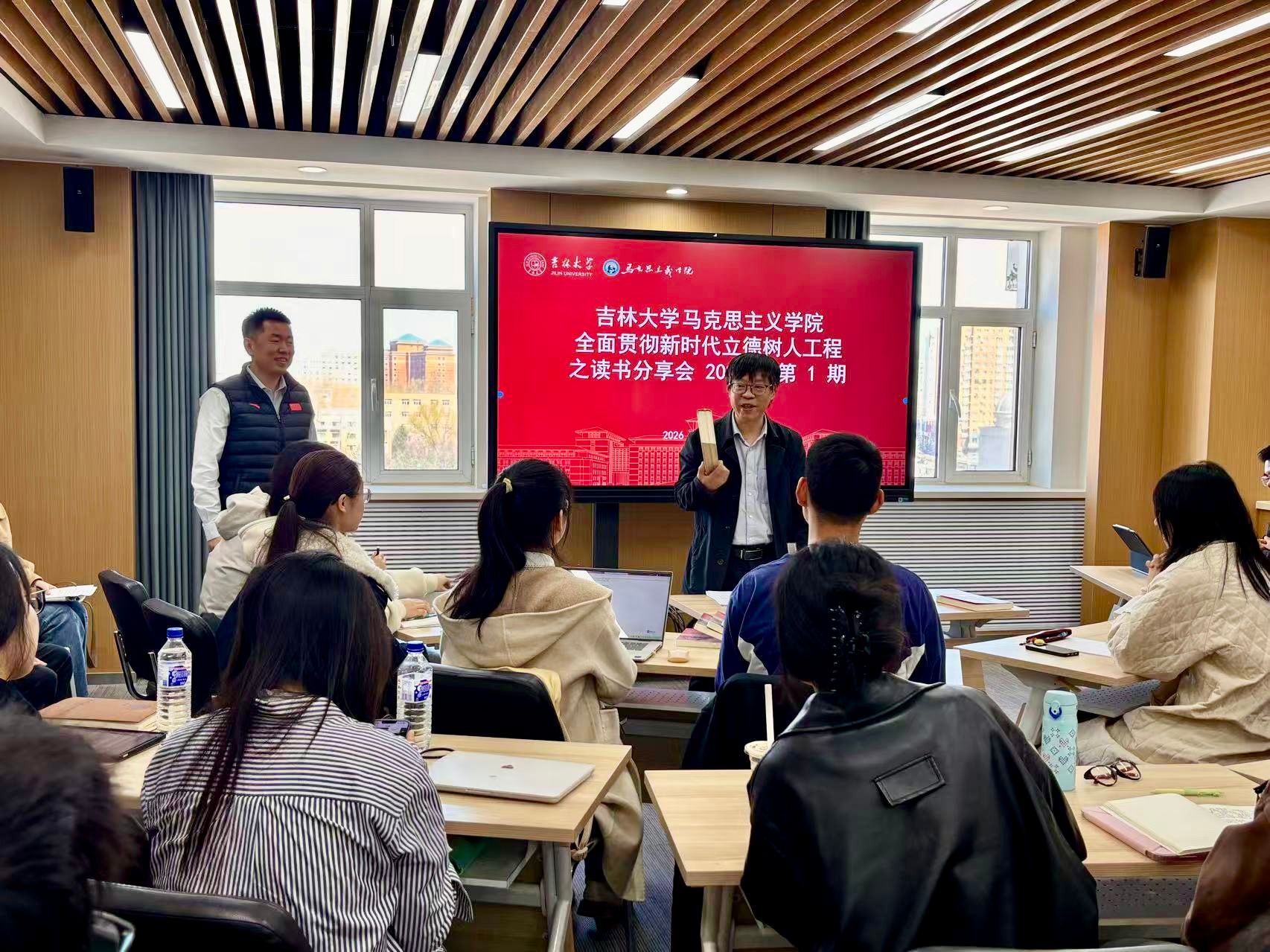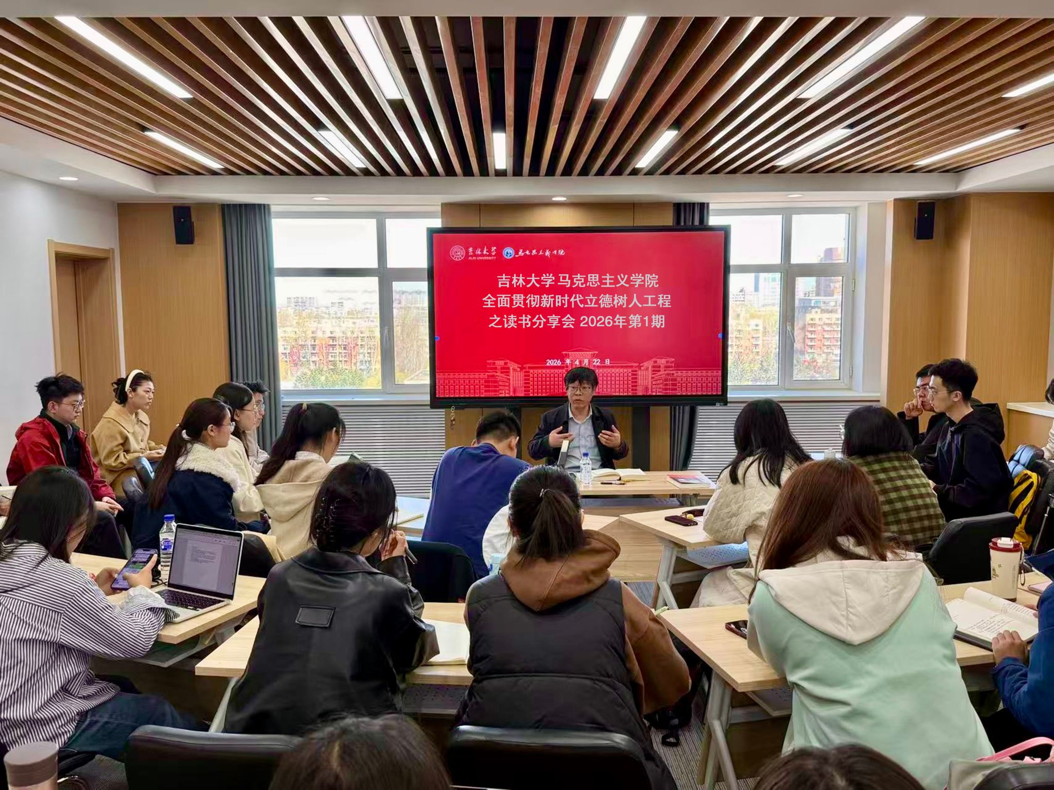 在吕振羽楼黄大年茶思屋,举办了全面贯彻新时代立德树人工程之读书分享会。本次活动邀请学院院长吴宏政担任主讲,院党委副书记兼副院长、纪委书记金光旭,学生工作办公室主任程思阳和100余名本、硕、博士生参加活动。