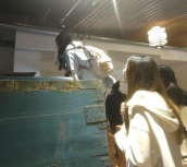 讲解员讲解白酒生产过程