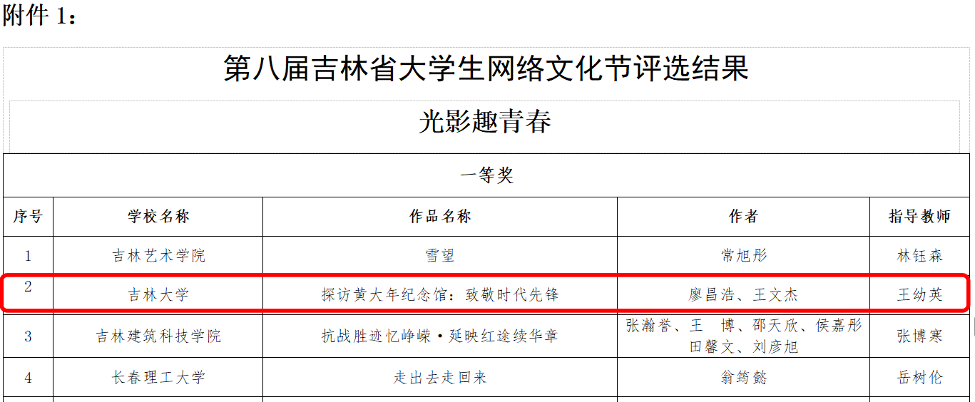 近日,吉林省教育厅公布第八届吉林省大学生网络文化节评选活动获奖名单,我院王幼英副教授指导荣获各赛道奖项共4项。