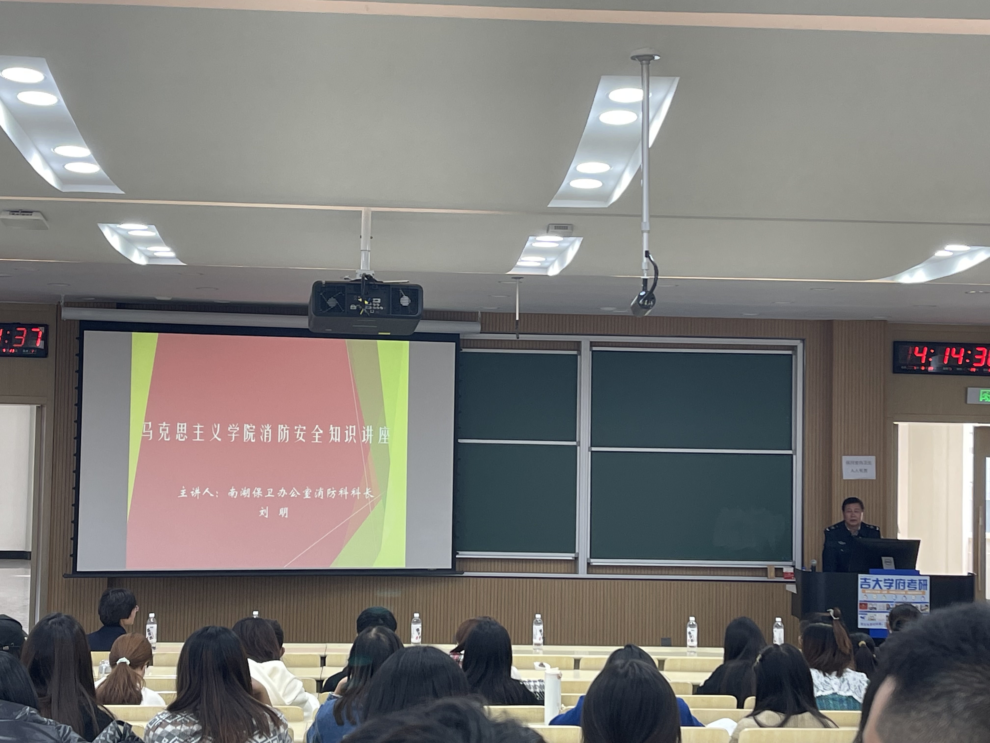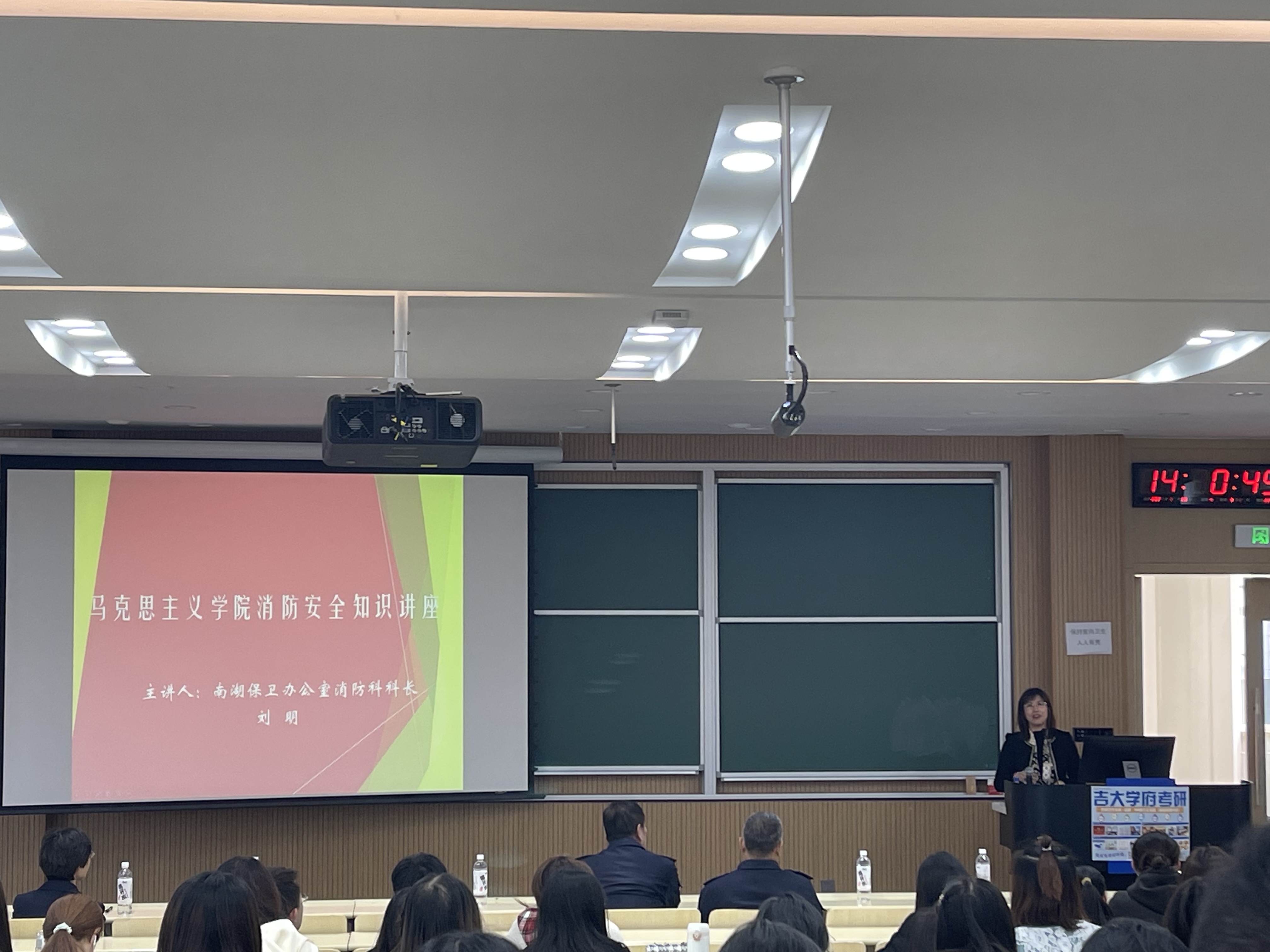 讲座主要分为三部分。首先,刘明老师为同学们介绍,高校作为火灾发生的特殊场所,具备着人员密集程度高、燃气火灾易发生这两大特点,一经火灾后果将不堪设想,为同学们敲响了防火防灾的安全警钟。其次,刘老师依照“防消结合,预防为主”的原则,针对不同火灾场景如何正确开展安全疏散与逃生的知识以及灭火器材使用方法等内容向大家进行了深入浅出的讲解。刘老师一再提醒同学们,应当根据杏吧视频