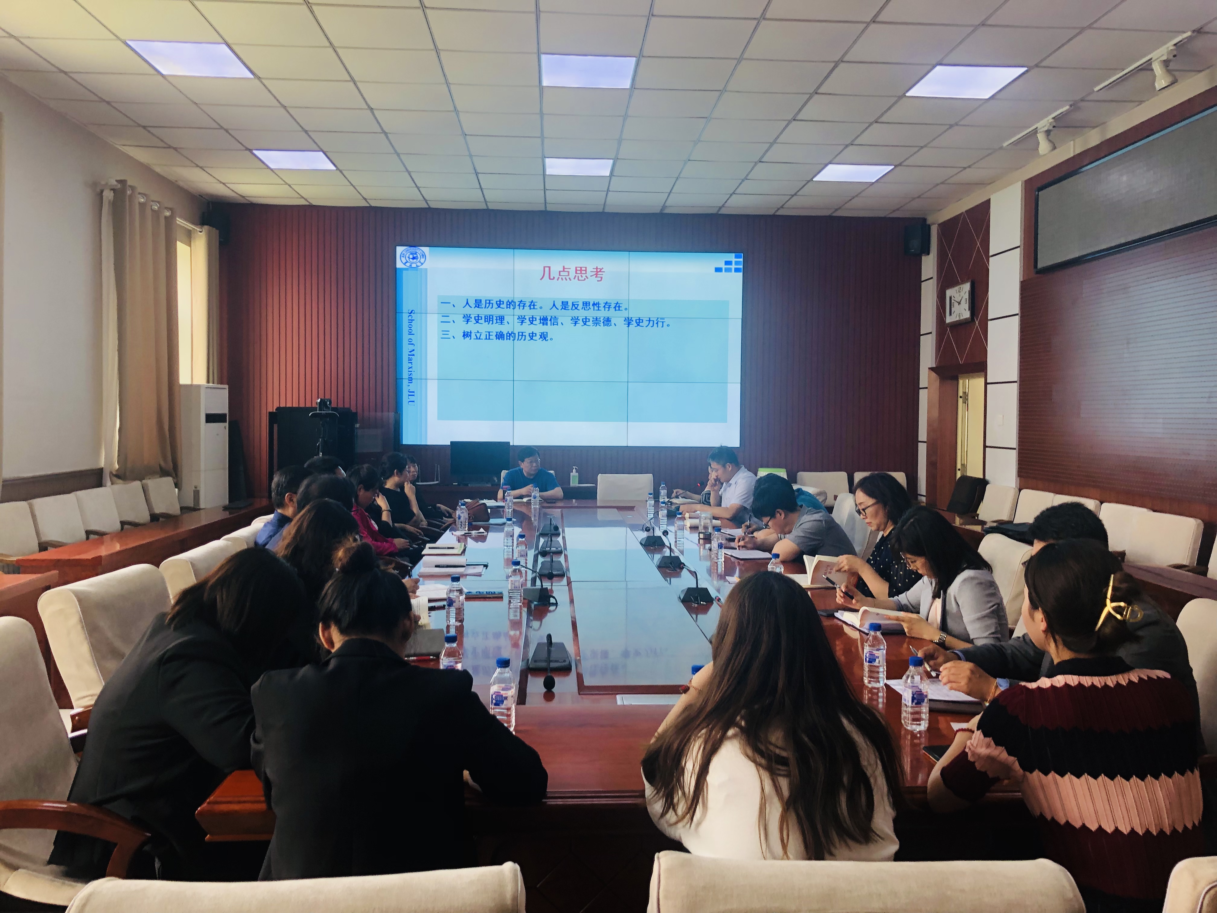党史学习教育实施方案工作推进会精神,即党史学习教育要抓高度,抓深度,抓厚度,抓亮度。同时,他结合学院实际情况指出,要把党史学习教育和习近平总书记最新讲话精神结合起来,把学院所有教师纳入到党史学习范围中来,边学边干边思考边总结。不仅要组织好学院的党史学习教育,还要在推进学校整体党史学习教育方面做出应有的贡献!