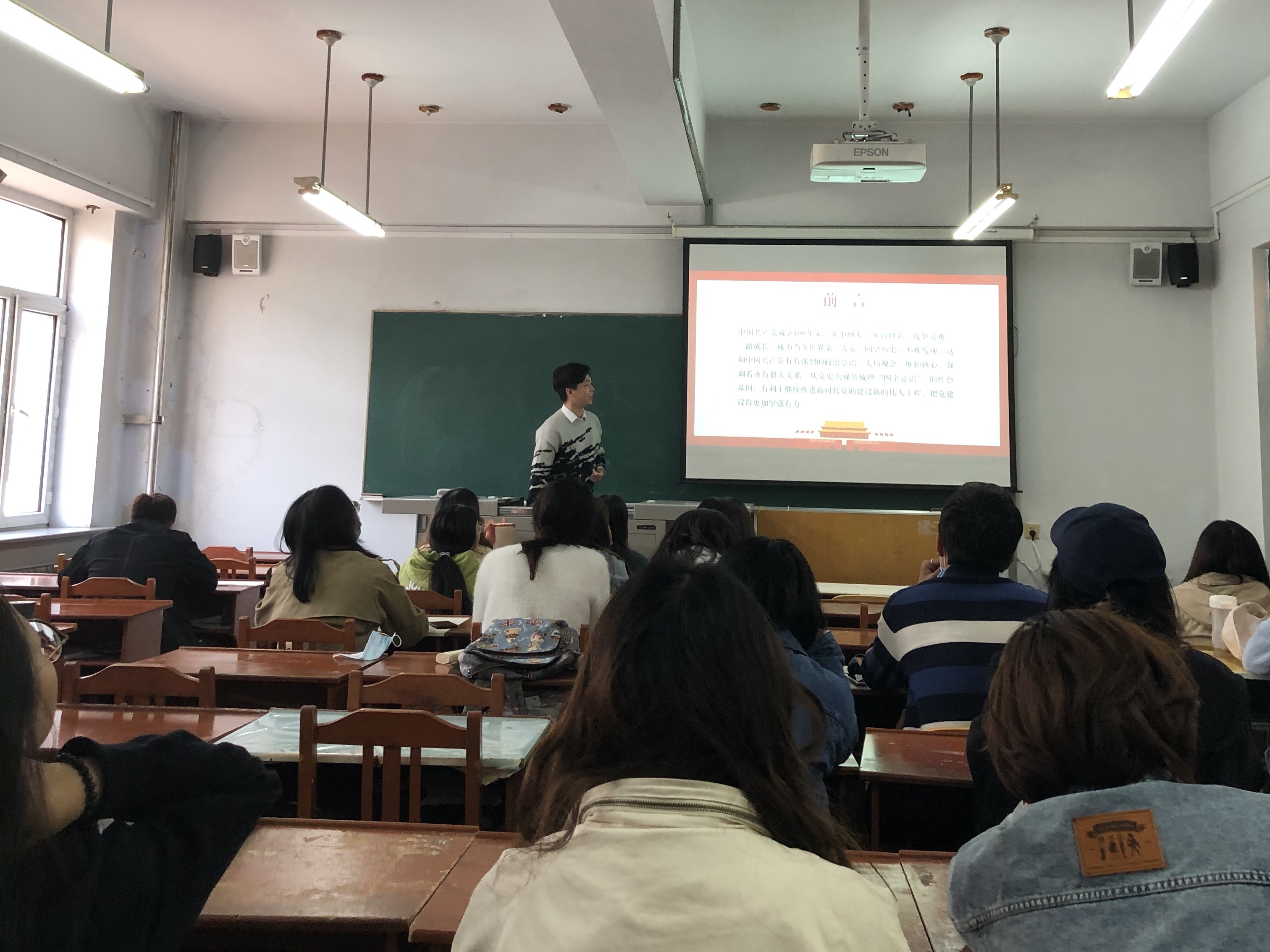 团支书谭太虎带领大家回顾了中国共产党成立100周年来,不断由弱到强、从小到大、攻坚克难的光辉历程。他强调,在新民主主义革命时期,党带领人民群众实现了新民主主义革命的胜利,推翻了帝国主义、封建主义、官僚资本主义“三座大山”的压迫,建立了新中国,具有重大的历史意义。