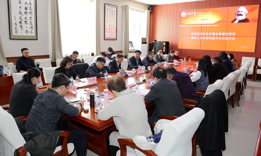 ,参加形势政策教研室《经济社会发展全面绿色转型建设人与自然和谐的现代化》课程的集体备课,就进一步加强和改进思政课教学工作与一线教师进行交流。