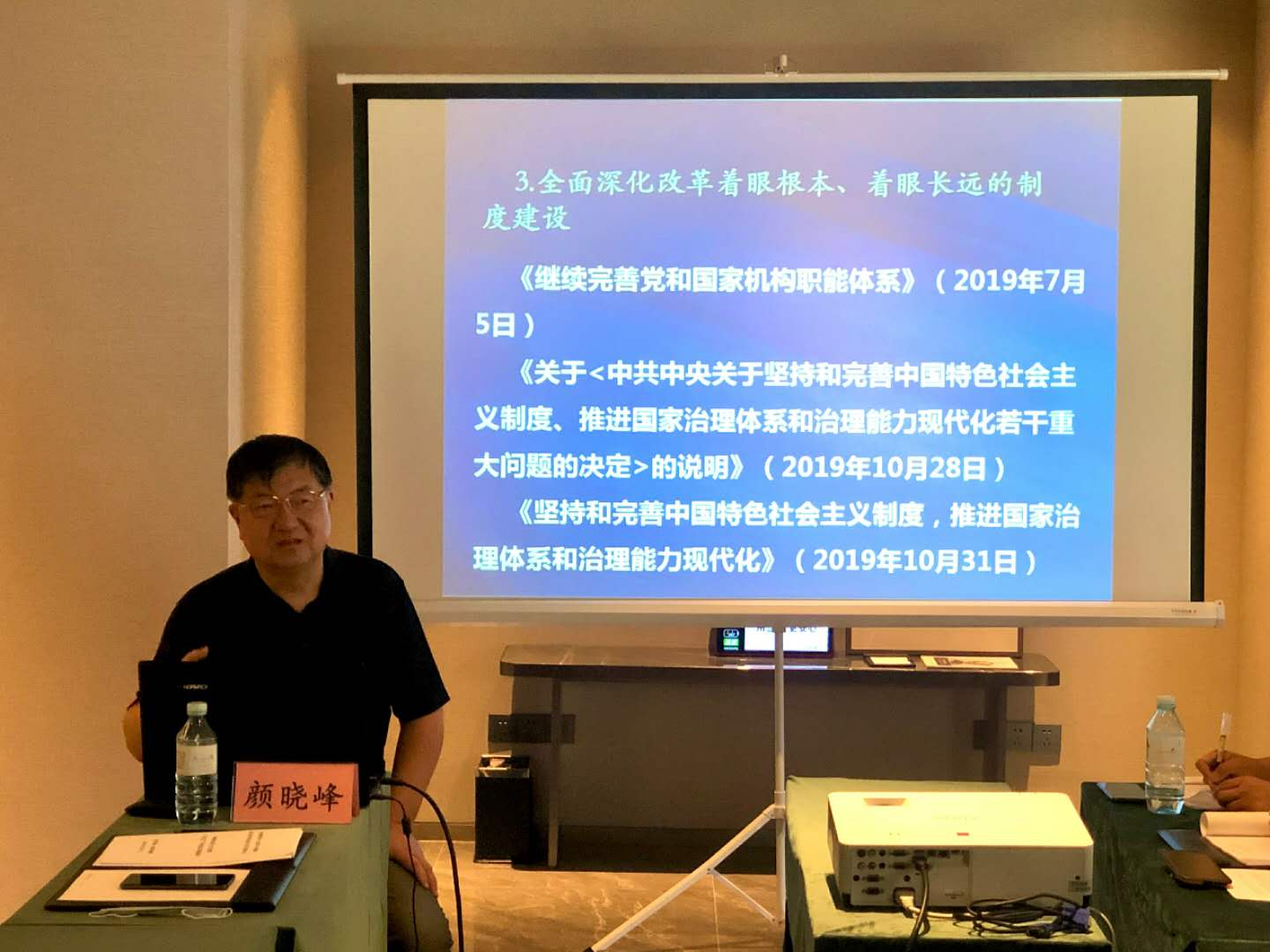 颜晓峰教授围绕《习近平谈治国理政》第三卷出版的时代背景、重大意义、主要内容等多个角度系统、全面阐释了《习近平谈治国理政》第三卷的思想精髓、理论贡献和时代价值。颜晓峰教授指出,《习近平谈治国理政》第三卷生动记录了党的十九大以来党和国家各项事业新的重大进展,集中反映了从十九大到十九届四中全会理论和实践创新的进程,是“两个一百年”历史交汇期的精准筹划,要深入学习领会党的十九大以来习近平总书记提出的许多具有原创性、时代性、指导性的重大思想观点,并重点就习近平新时代中国特色社会主义经济思想、习近平生态文明思想、习近平强军思想、习近平外交思想、习近平总书记关于全面依法治国的新理念新思想新战略、习近平总书记关于宣传思想工作的新思想新观点新论断、习近平总书记关于教育改革发展的新理念新思想新观点等方面做了详细阐释。报告最后,颜晓峰教授还从打赢疫情防控人民战争、总体战、阻击战,应对美国对我国全方位遏制打压的严峻形势,决战决胜脱贫攻坚、全面建成小康社会等维度例证了习近平新时代中国特色社会主义思想的深厚实践伟力。