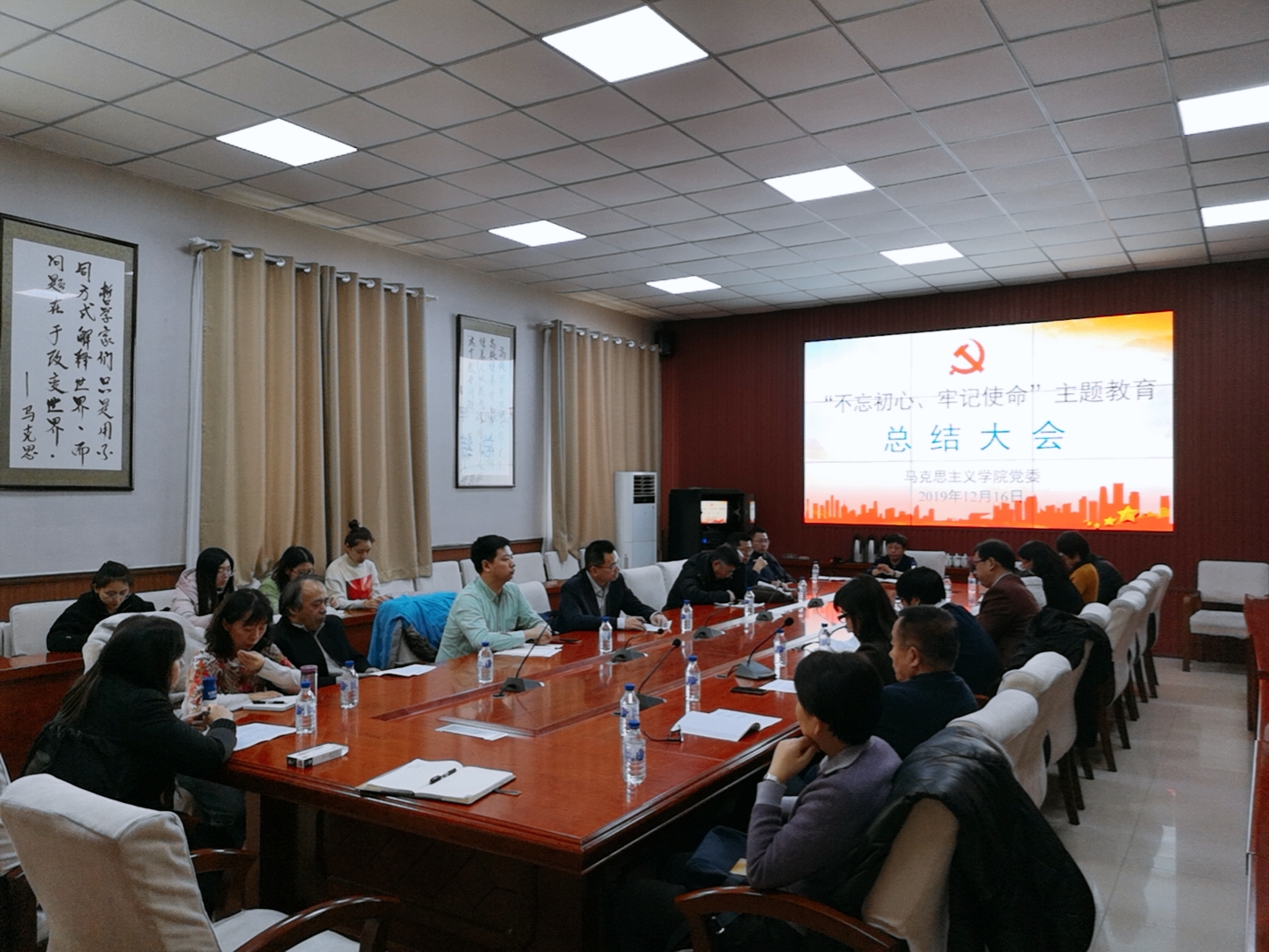 在南湖校区学院一楼多媒体会议室召开了“不忘初心、牢记使命”主题教育总结大会。学校主题教育第十指导组组长、校人才办公室姚毓春主任、校审计处高文松科长出席主题教育总结大会。学院班子成员、三委主任、党委委员、纪委委员、近期退出的班子成员、支部书记、教研室主任、行政办公室科主任、教工代表参加本次总结大会。会议由学院党委副书记、纪委书记崔妍主持。