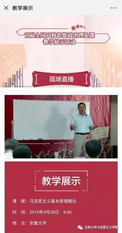 首届全国高校思想政治理论课教学展示活动,是教育部为深入学习贯彻习近平总书记在学校思想政治理论课教师座谈会上的重要讲话精神,深入实施“新时代高校思想政治理论课创优行动”的重要举措。本次教学展示历时四个月,经过各省级教育行政主管部门、教育部社科司的严格选拔,全国共有700名思想政治理论课教师入选“首届全国高校思想政治理论课教学展示活动”推荐教师。教育部组织专家对入围教师的教案和教学视频进行网络评审,全国入围首届高校思想政治理论课教学展示活动“现场教学展示”教师共200人。