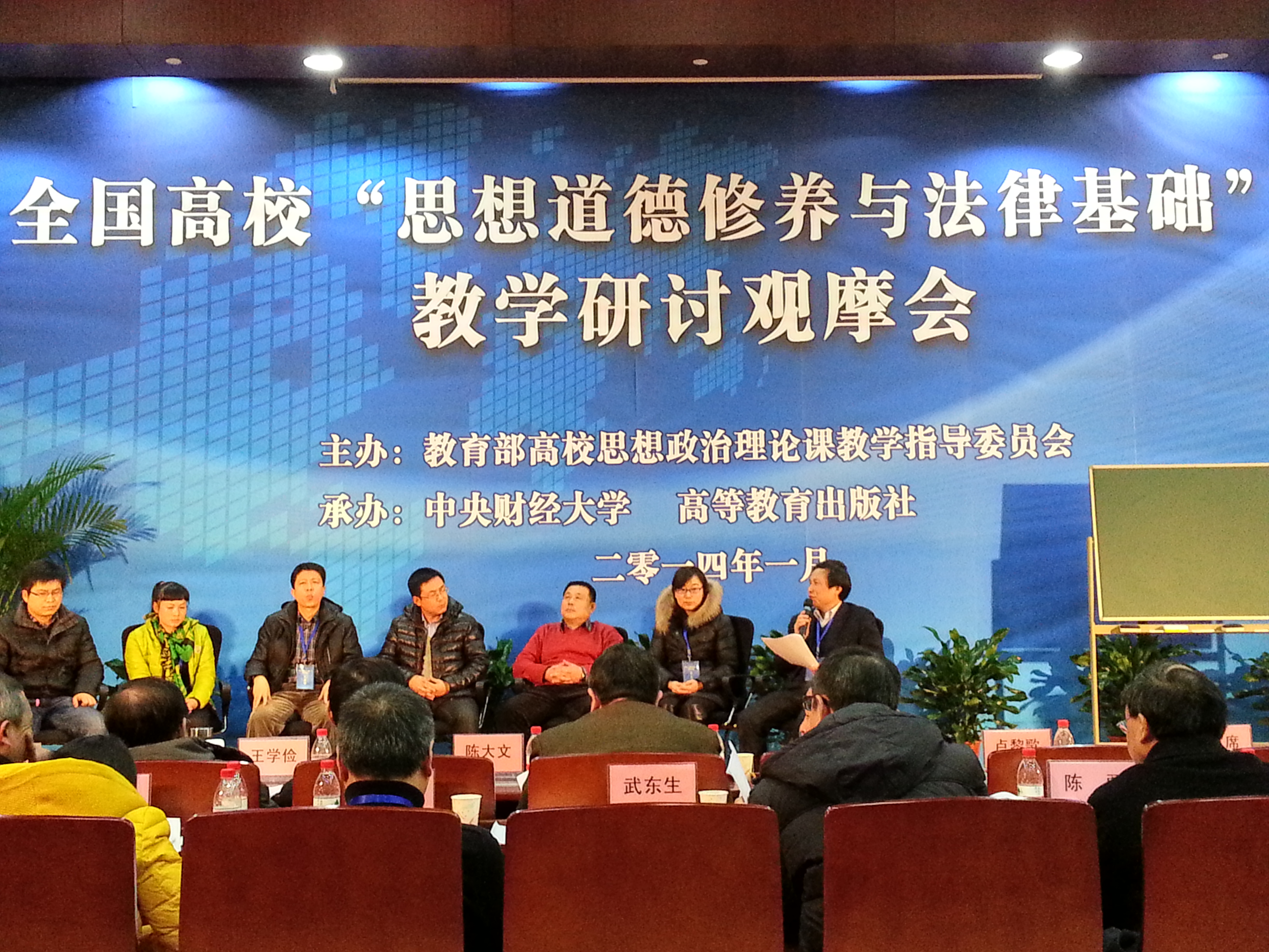 2014年1月18日至21日,由教育部高校思想政治理论课教学指导委员会主办,中央财经大学和高等教育出版社承办的全国高校“思想道德修养与法律基础”课教学研讨观摩会在中央财经大学召开,来自全国各省市60多所高校的教师参加了会议。教育部社科司徐艳国副司长、陈矛处长,全国高校思想政治理论课教学指导委员会“思想道德修养与法律基础”课分教学指导委员会胡树祥、曲建武、陈大文、卢黎歌、王学俭、陈勇、罗映光、高国希、武东生、颜吾佴等领导和专家也出席了本次会议。