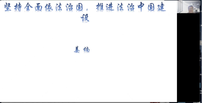 姜楠从坚持全面依法治国,推进法治中国建设的角度理解二十大会议理论。依法治国到全面依法治国,是一种战略的深化,同时强调“全面”的两层含义既对象和主体的两个方面。从法治中国的建设总结出的一条道路和两个体系再到完善中国特色社会主义法治体系的五个方面,从党的十八大到党的二十大层层递进,对于国家推出一系列建设法治中国的国家政策进行详细的讲解。