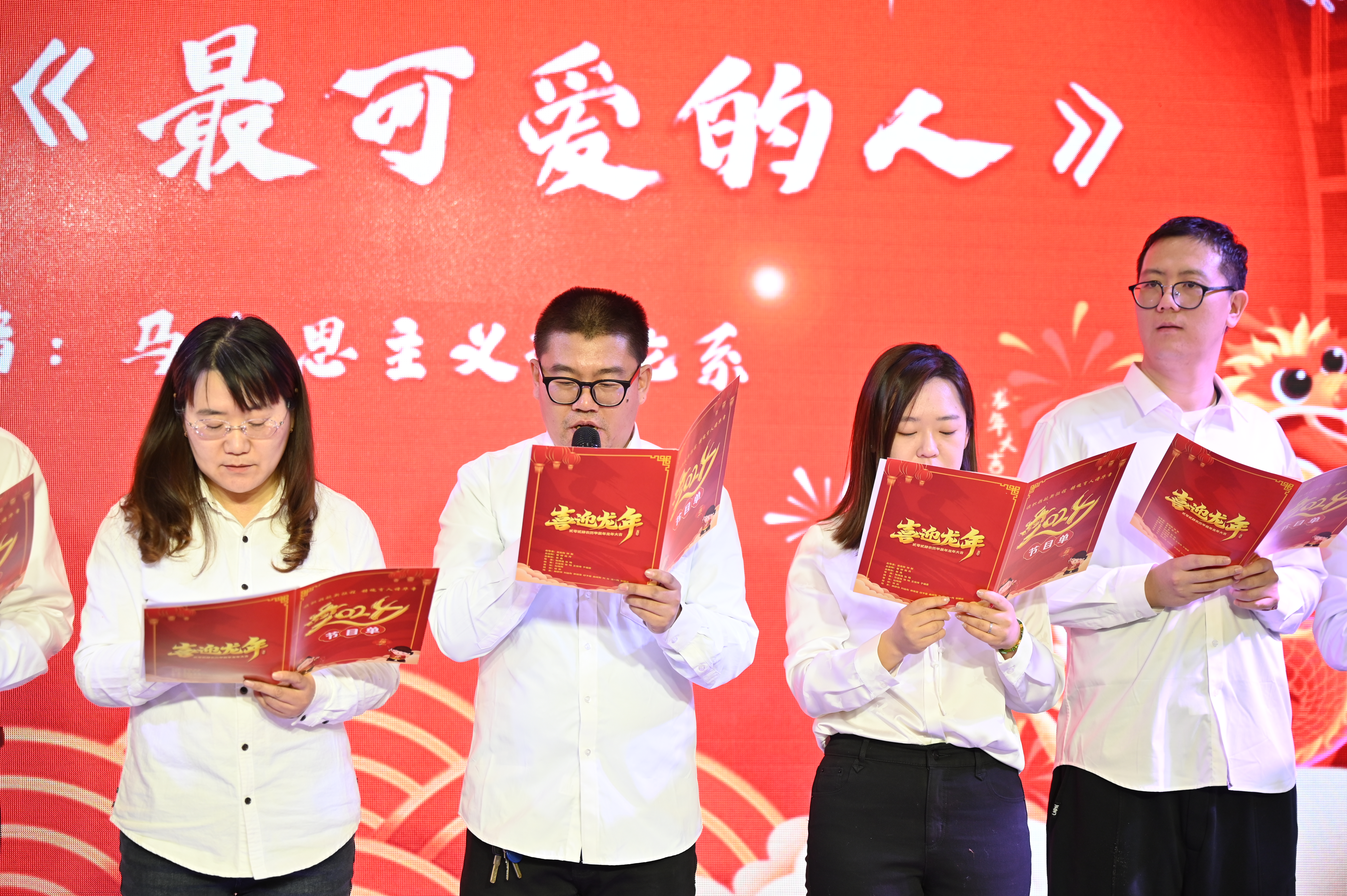 由吴宏政院长带来的吉他弹唱《春风十里》既为联欢会增添了幸福美好的气氛,也为新的一年翻开了充满喜悦的第一页。《我和我的祖国》大合唱与诗朗诵《最可爱的人》激起每个人浓烈的爱国情怀,将联欢会热烈的气氛推向了高潮。