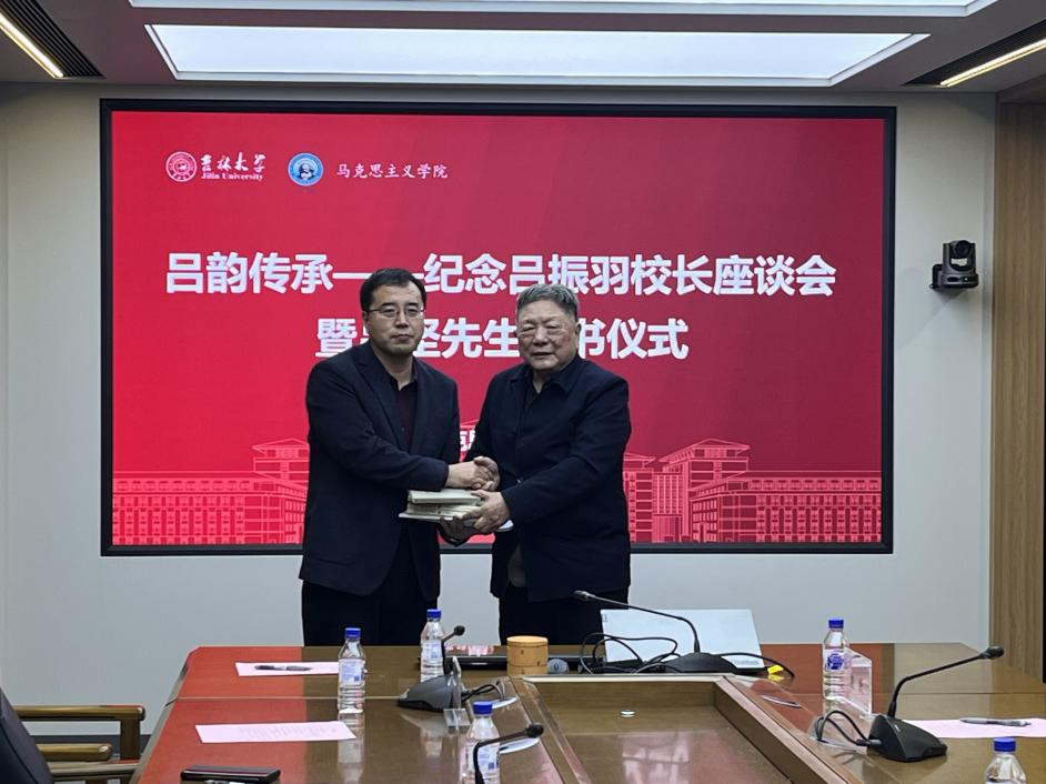 赠书仪式上,吕坚先生将一批珍贵的吕振羽先生著作和相关研究资料捐赠给学院,希望这些资料能够帮助学院师生更好地学习和研究吕振羽先生的学术成果,传承吕振羽精神。副院长、吕振羽班班主任董树彬代表学院接受赠书。