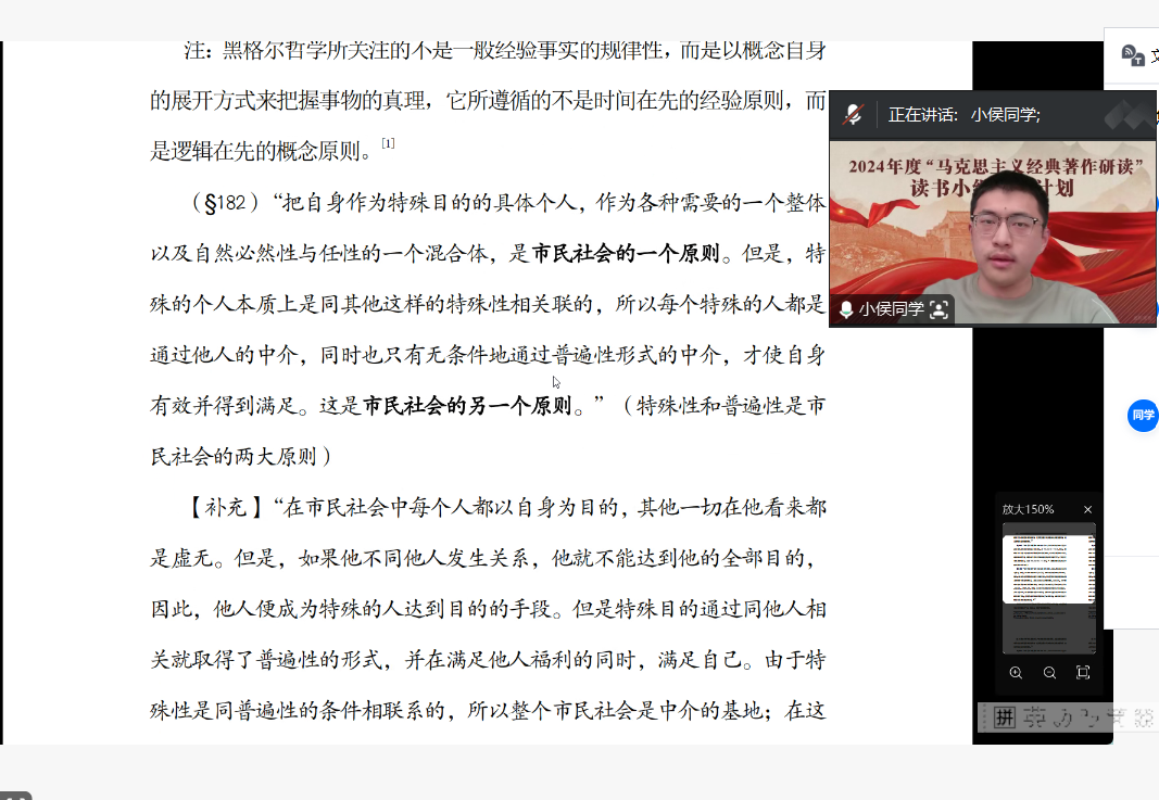 马研会《德意志意识形态》读书小组开展了以“从黑格尔到马克思:市民社会和国家关系的澄清 ”为主题的线上研讨活动。