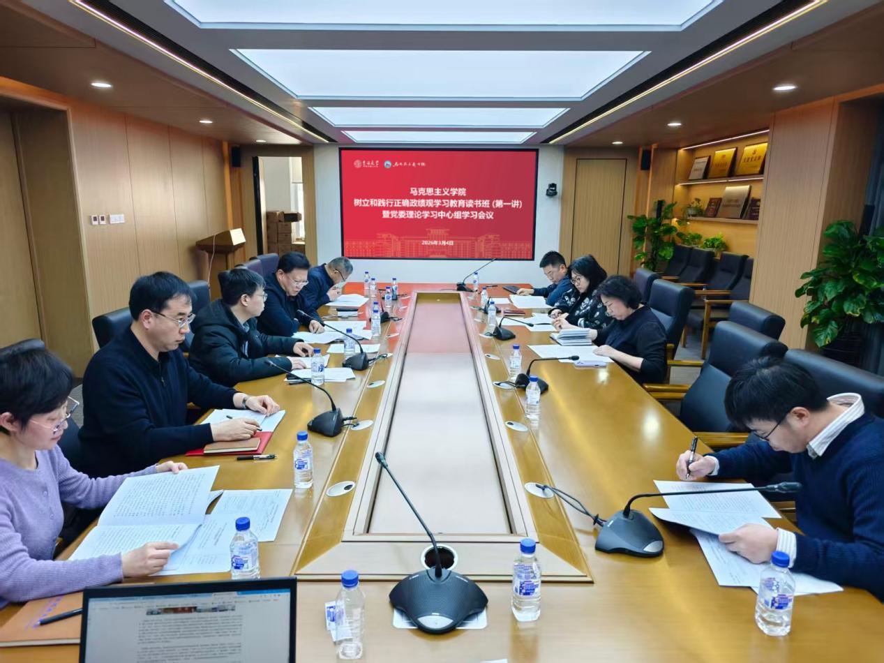 召开树立和践行正确政绩观学习教育读书班(第一讲)暨党委理论学习中心组集体学习会议。学院全体领导班子成员参加会议,会议由学院党委书记钟新主持。