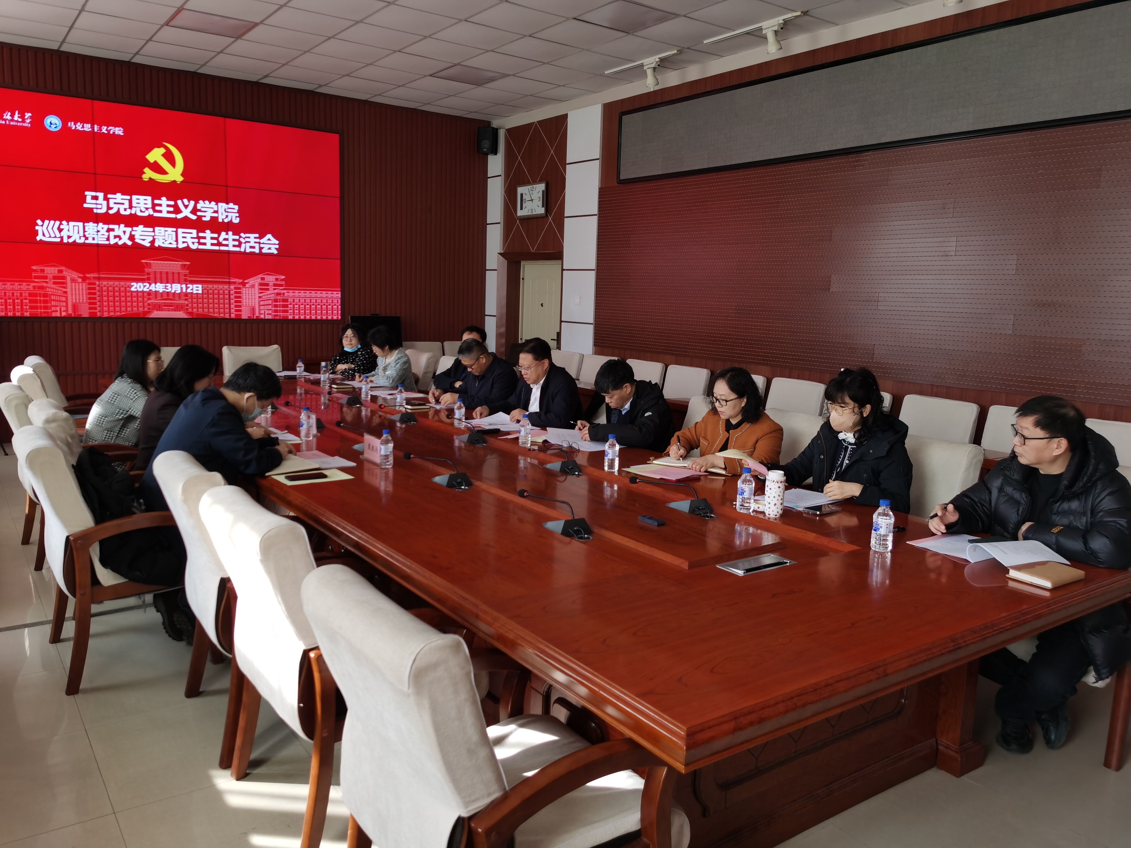 2024312日,杏吧视频 在一楼多媒体会议室召开巡视整改专题民主生活会学院全体领导班子成员出席会议学校机关党委书记兼党委组织部副部长、原校党委第五巡视组组长张蓼红学院党建工作联络员戴继周纪检监察机构第一纪检监察室主任王希列席会议。会议由党委书记钟新主持。