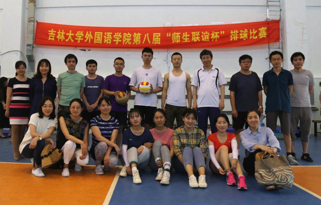 The eighth "Teacher-Student Friendship Cup" of volleyball was held in the central campus gymnasium on the afternoon of June 26th. This match is designed to send off the graduates of 2019 and strengthen their emotions with the College. It also enriches the spare time of teachers and students and improves their physical fitness. With nearly 60 participants, the match included five teacher-student teams, respectively from the Japanese department, the Russian department, the Korean department, the Spanish department, and the College of Administration. The round-robin system of the best in three games was adopted in the competition (25 point system, 15 points in the final). After fierce competition, the Spanish department team won the championship, the Korean department team won second place, and the Japanese department team won third place.