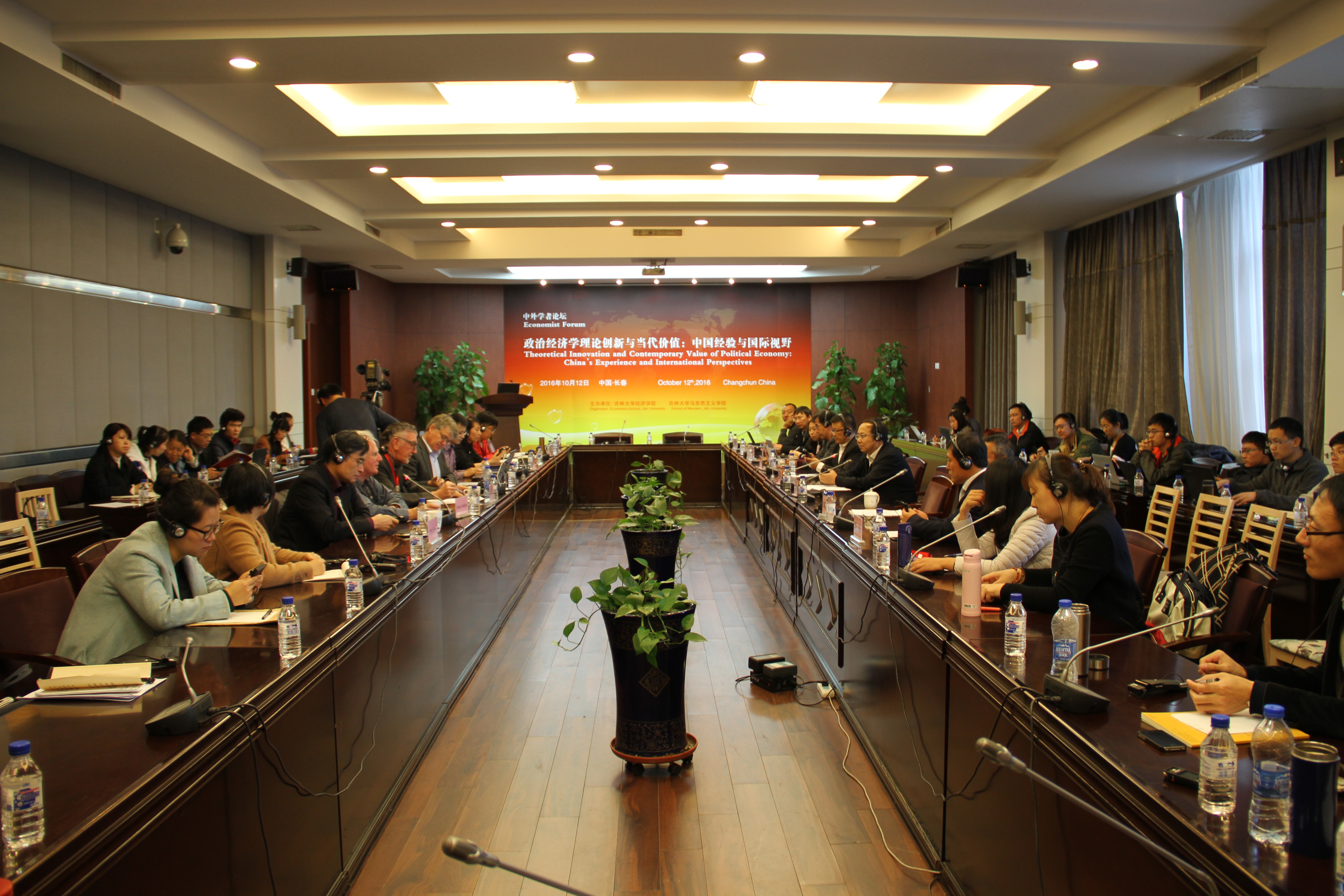 中外学者就政治经济学发展和中国经济发展问题进行了研讨。在国外专家学者发言阶段,Simon Mohun教授介绍了马克思主义经济学在英国的发展现状,他认为主流经济学没有对金融危机做出很好的解释,马克思主义政治经济学应做好这方面的研究。Wolfram Elsner教授谈到了他对于利润率的研究,并对目前金融业对制造业的冲击发表了看法。守健二教授介绍了日本学界目前致力于翻译出版马克思的全部著作,并表示日本会努力为亚洲马克思理论的研究做出贡献。Markus Taube教授对中国市场经济发展和产能过剩等问题发表了见解。他们在发言中均表达了对新一代青年学者继承发扬马克思主义政治经济学的期许。在国内专家学者发言阶段,程恩富教授对中国政治经济学的发展和中国经济的各种问题发表看法,他提出经济学学派化能够带动学科发展,谈到政治经济学方法论的创新,同时回应了Markus Taube教授的对中国市场化问题的观点。宋冬林教授对学好、用好政治经济学和中国经济问题如国企改革、东北经济问题等发表了看法。纪玉山教授提出了智能经济的重要地位,并从八个方面对智能经济时代发展马克思主义政治经济学提出了见解。