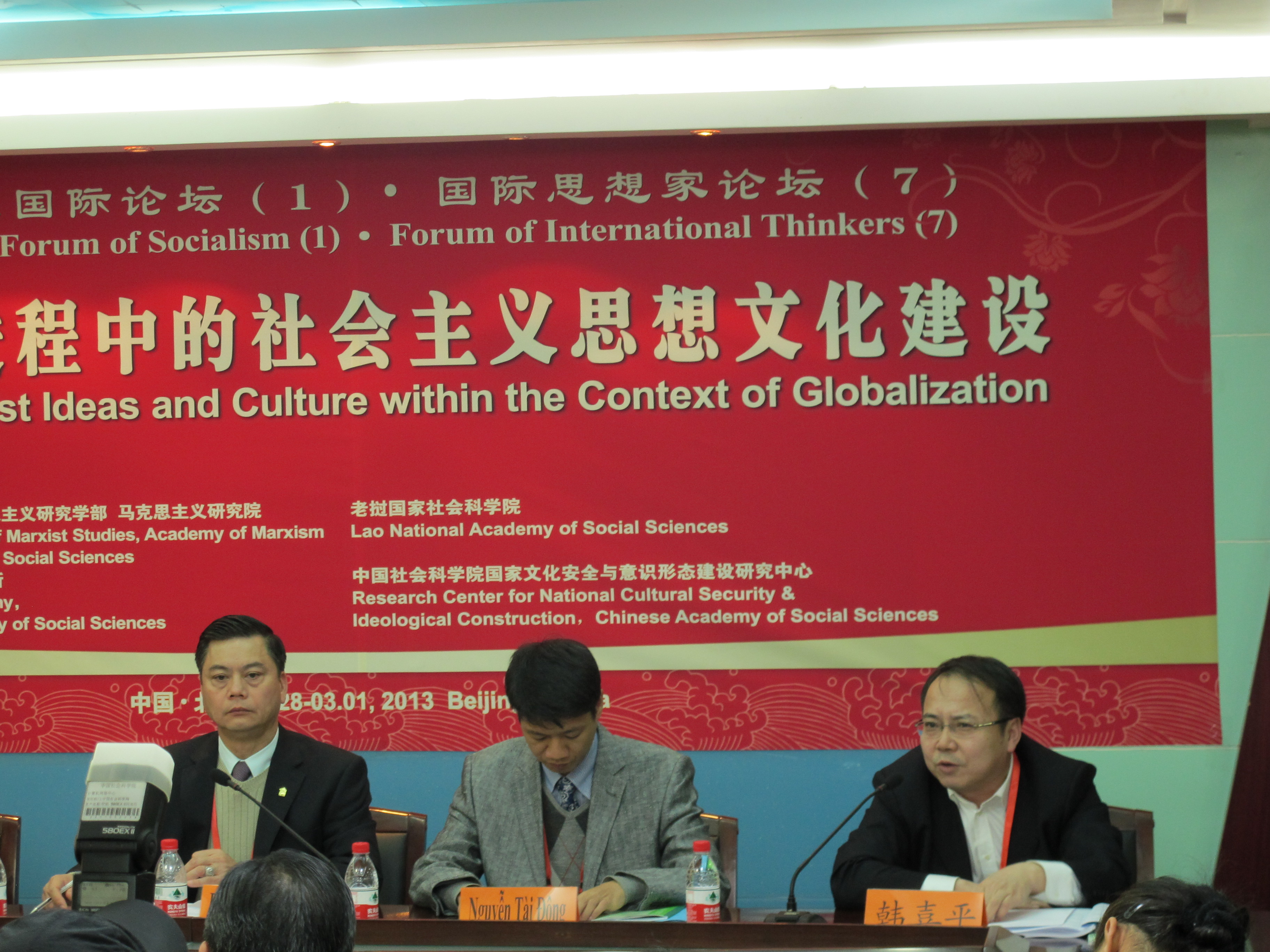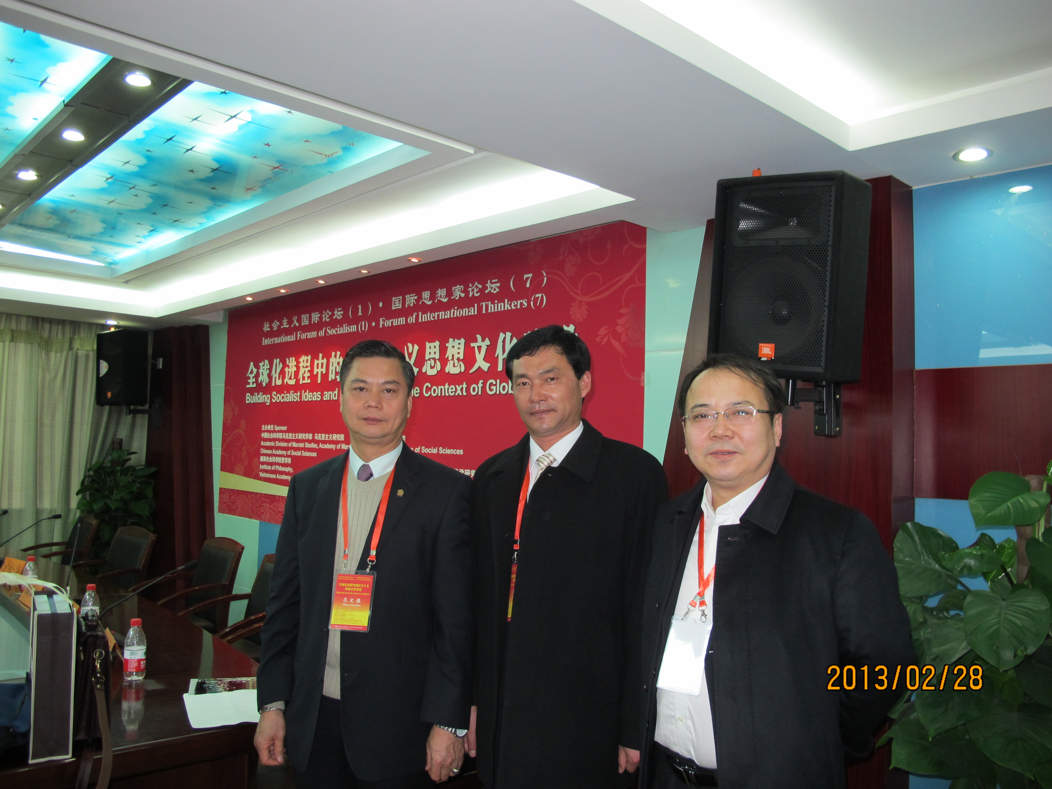 2013年2月28日至3月1日,第一届社会主义国际论坛暨第七届国际思想家论坛在中国社会科学院隆重举行,本次论坛由中国社会科学院马克思主义研究学部、马克思主义研究院、国家文化安全与意识形态研究中心以及越南社会科学院哲学所、老挝国家社会科学院共同主办,来自中国、越南、朝鲜、老挝、古巴的六十余位学者参加本次论坛,古巴驻华大使白诗德(Alberto J.Blanco Silva)到会讲话。本次论坛的主题是“全球化进程中的社会主义思想文化建设”,与会学者就全球化背景下的社会主义文化建设、文化安全、文化理论创新以及弘扬民族文化、文化交流等问题展开了广泛地探讨与交流。我校杏吧视频